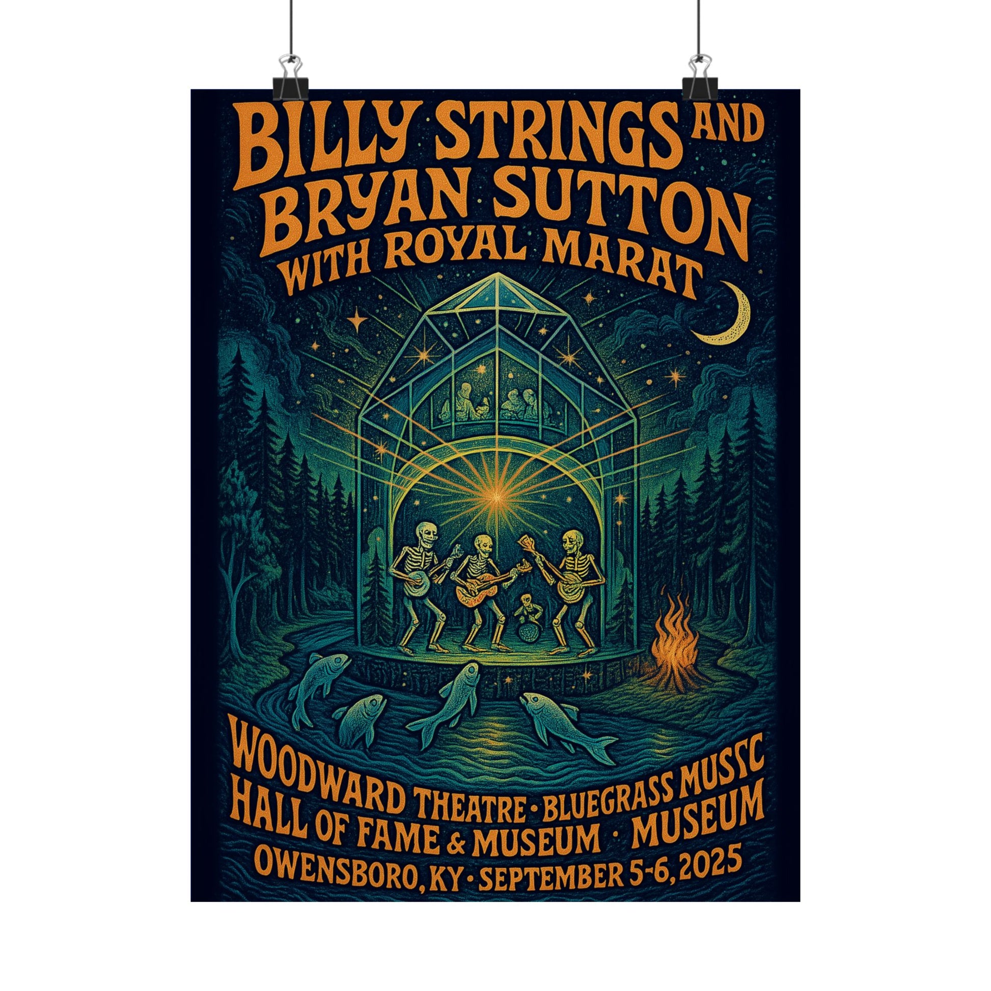 Perfect for fans of bluegrass, jam band culture, psychedelic art, and unique concert poster aesthetics, this print makes an unforgettable statement piece for your home, office, or music room. Celebrate the spirit of Billy Strings and Bryan Sutton with a piece that's as unique and vibrant as their music.