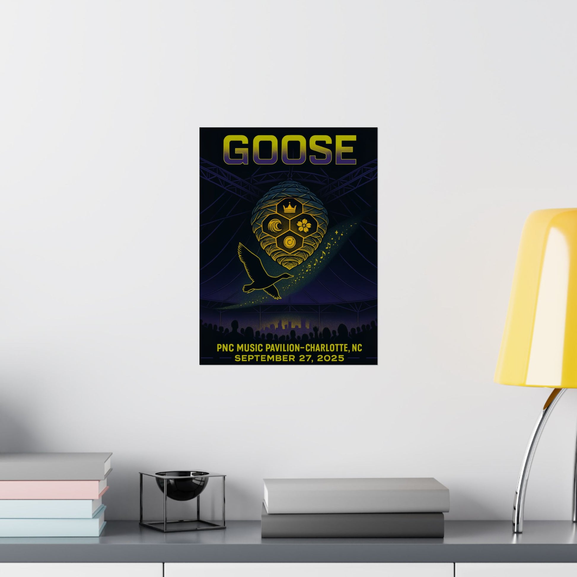This unique artwork celebrates Goose's layered symbolism, vibrant live energy, and the distinctive spirit of Charlotte, all harmoniously blended into a design that is both transportive and deeply resonant for any fan.