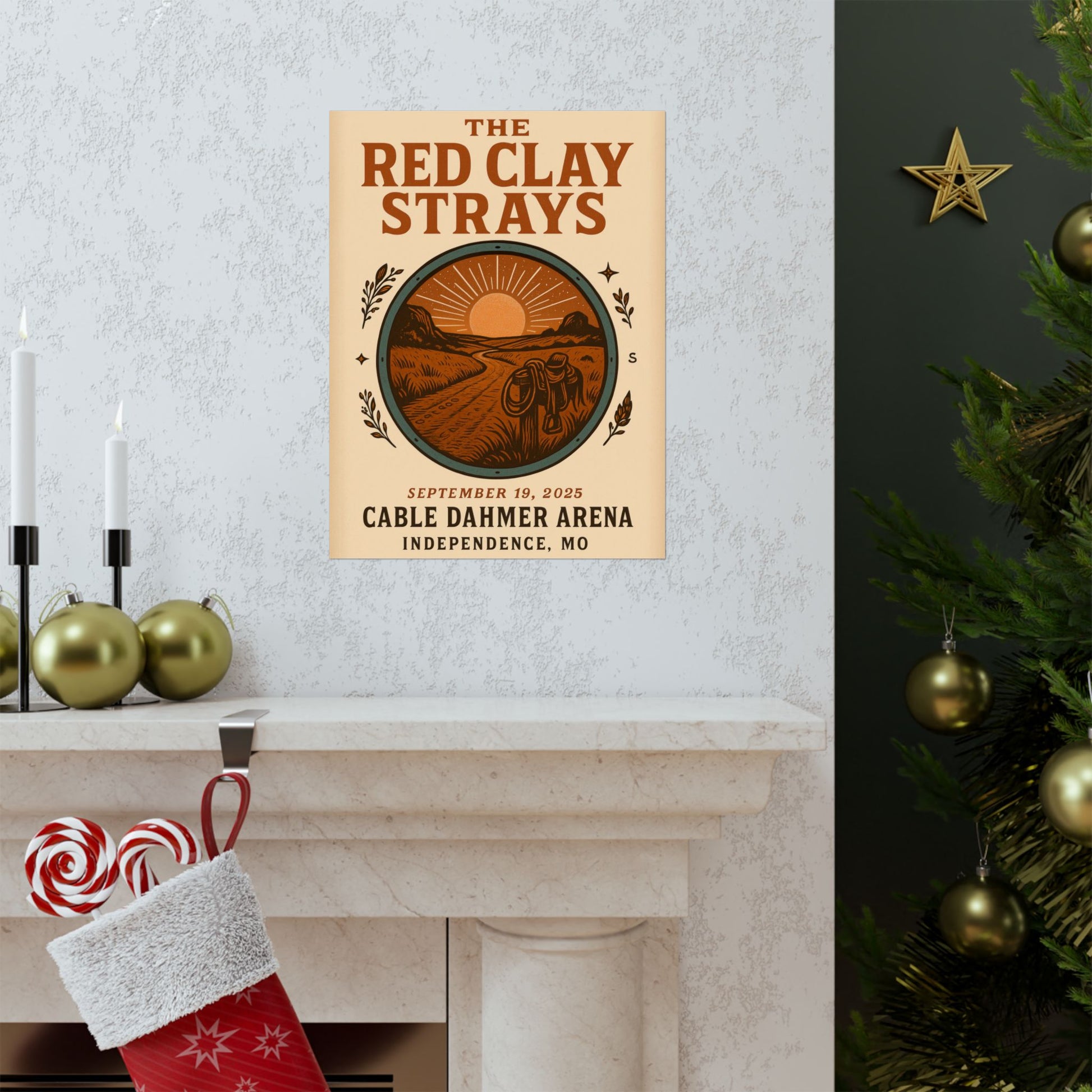 Immerse yourself in the raw, soulful essence of The Red Clay Strays with this captivating art print, celebrating their electrifying performance at Cable Dahmer Arena in Independence, MO, on September 19, 2025. This isn't just a poster; it's a meticulously crafted piece of Americana folk music art, designed to transport you to the heart of their road-worn sound and cinematic narrative. Its vintage aesthetic, infused with modern detail, captures the band's distinctive spirit and the rich history of its setting.