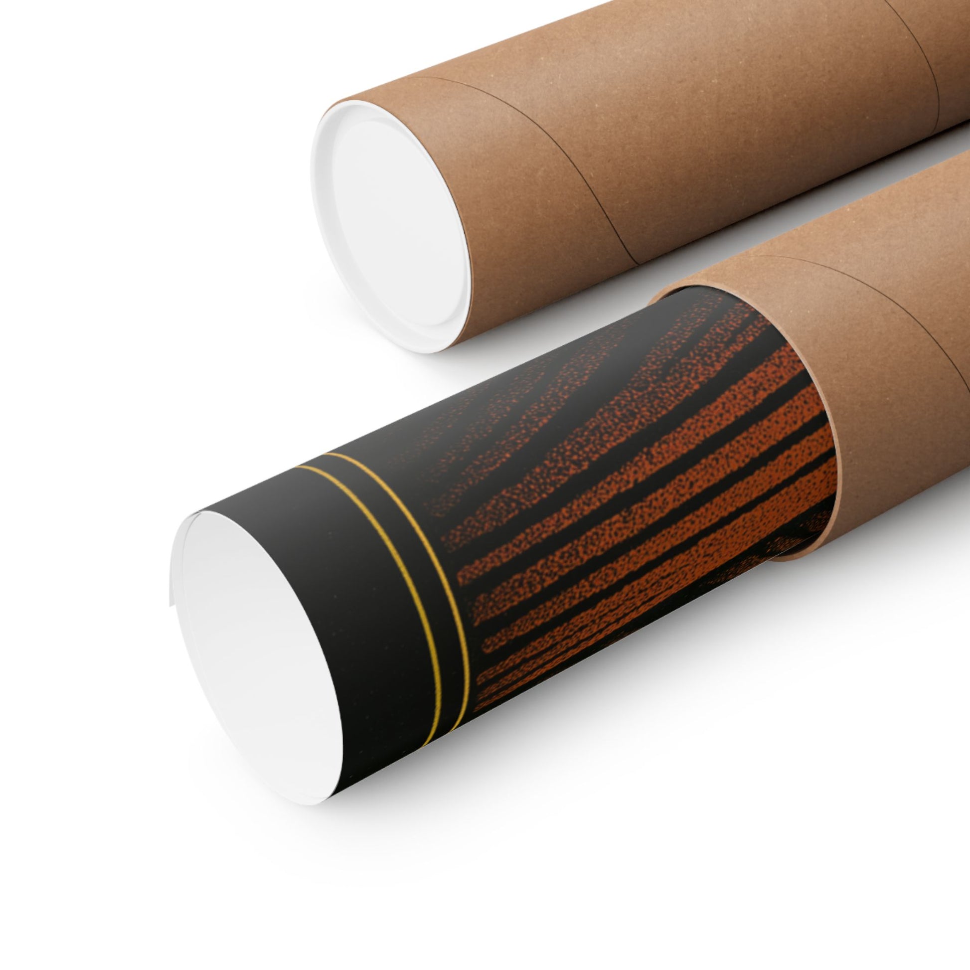 "Earthwork Echoes" transports you to a sweeping vista where the Amphitheater's natural slopes are reimagined as ancient, terraced earthworks, drawing a profound link to Macon's historic Ocmulgee Mounds. From a powerful, minimalist stage, vibrant bursts of light emanate outwards, transforming into undulating sound waves that carry the band's electrifying energy into the night. The rich, earthy textures of burnt sienna, deep lamp black, and antique gold paint a striking backdrop, accented by a meandering ribbon of Ocmulgee River teal, firmly anchoring this print in its distinct Georgian setting.