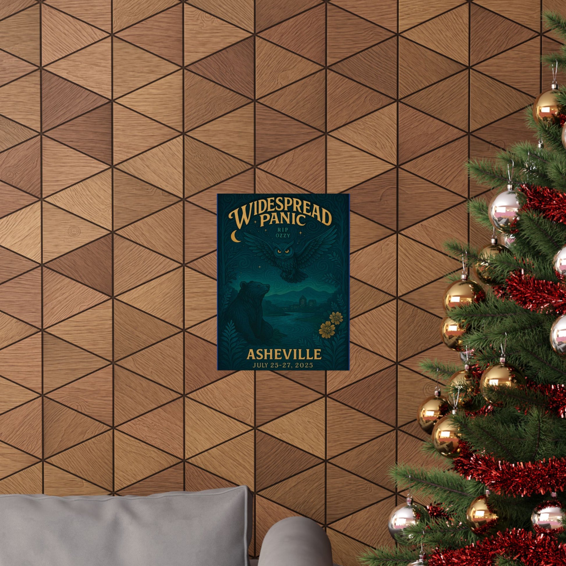 Celebrate three unforgettable nights of music in the Blue Ridge Mountains with this fan-made, limited edition Widespread Panic Asheville 2025 poster — a heartfelt tribute to the band's July 25–27, 2025 run. Created by a dedicated artist and fellow fan, this screen print blends Appalachian mysticism, musical nostalgia, and a poignant tribute to Ozzy.